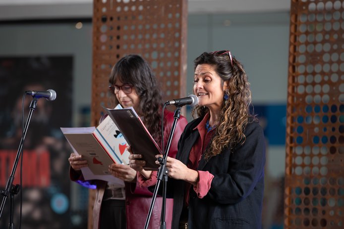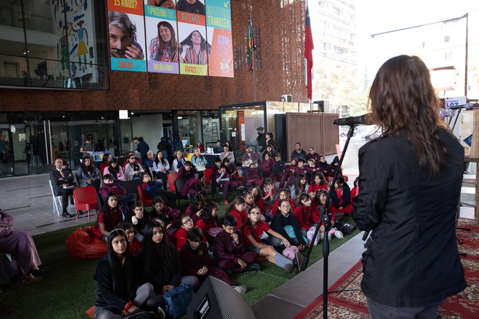 Participan: María Gracia Omegna, actriz | María Gabriela Huidobro, historiadora y escritora | Francisca Donaire, Karla Bustos y Constanza Abarca, colectiva feminista Matriadanzante | Georgina Odi, escritora e ilustradora, representante de la Sociedad de Escritores de Chile (SECH) | Estudiantes del Liceo 6 Bicentenario Teresa Prats de Santiago | Aracelly Rojas, Secretaria Ejecutiva del Consejo Nacional del Libro y la Lectura.
