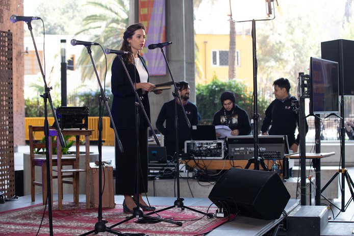 Participan: Alejandra Martí, directora ejecutiva GAM | María José Cifuentes, directora de Programación GAM | Kenza El Ghali, embajadora de Marruecos | Gonzalo Bonifaz Tweddle, Cónsul General de Perú | Alejandra Costamagna, escritora | Érika Montecinos, periodista, escritora y activista.