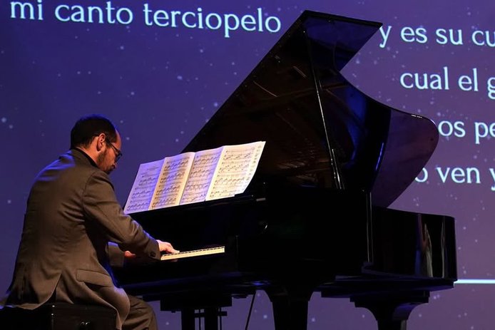 “Este concierto surgió durante los días de pandemia. Nos juntábamos temprano a estudiar y preparar el repertorio y empezaron a aparecer cosas de a poco, y un día cuando Natalia estaba en Italia llegó a mis manos una poesía de Gabriela Mistral que se llama ‘Botoncito`, en una hora la tenía lista con música pero faltaba que cobrara vida, así que se la mostré a Natalia, le gustó y empezaron a llegar otras. Fluyó, como que las páginas se abrían solas y decían ‘ponme música’. Aparecieron seis canciones, las vimos con Natalia y esa fue la historia, ya que antes habíamos grabado una de las poesías musicalizadas”, recuerda el pianista Simón Morgado.