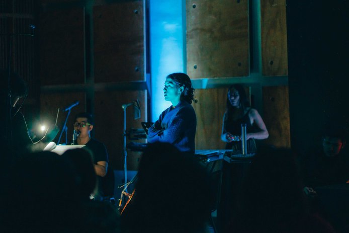 Compositor y Productor Miguel Farías | Cantantes Valeria Vega, Pedro Alarcón, Carlos Díaz | Violoncellista Marcelo Mella | Clarinetista Nicolás Guerrero | Violinista Francesca Montefusco | Percusionista Natalia Vega | Director Paolo Bortolameolli | Dirección de escena e iluminación Constanza Thümler