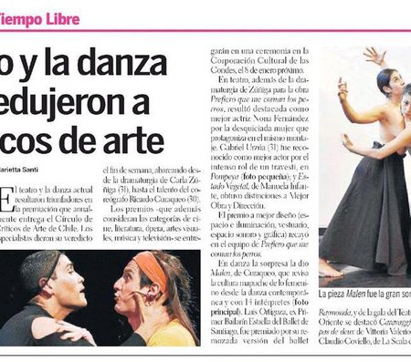 El montaje es interpretado por Rodrigo Pérez, Guilherme Sepúlveda, Gastón Salgado y el ganador al Mejor Actor del Círculo de Críticos por este papel, Gabriel Urzúa.