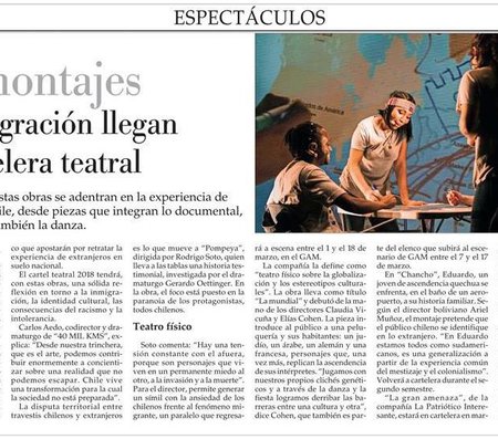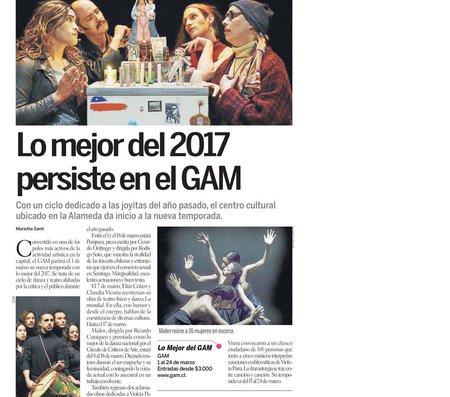 La obra se estrenó en GAM en septiembre de 2017.